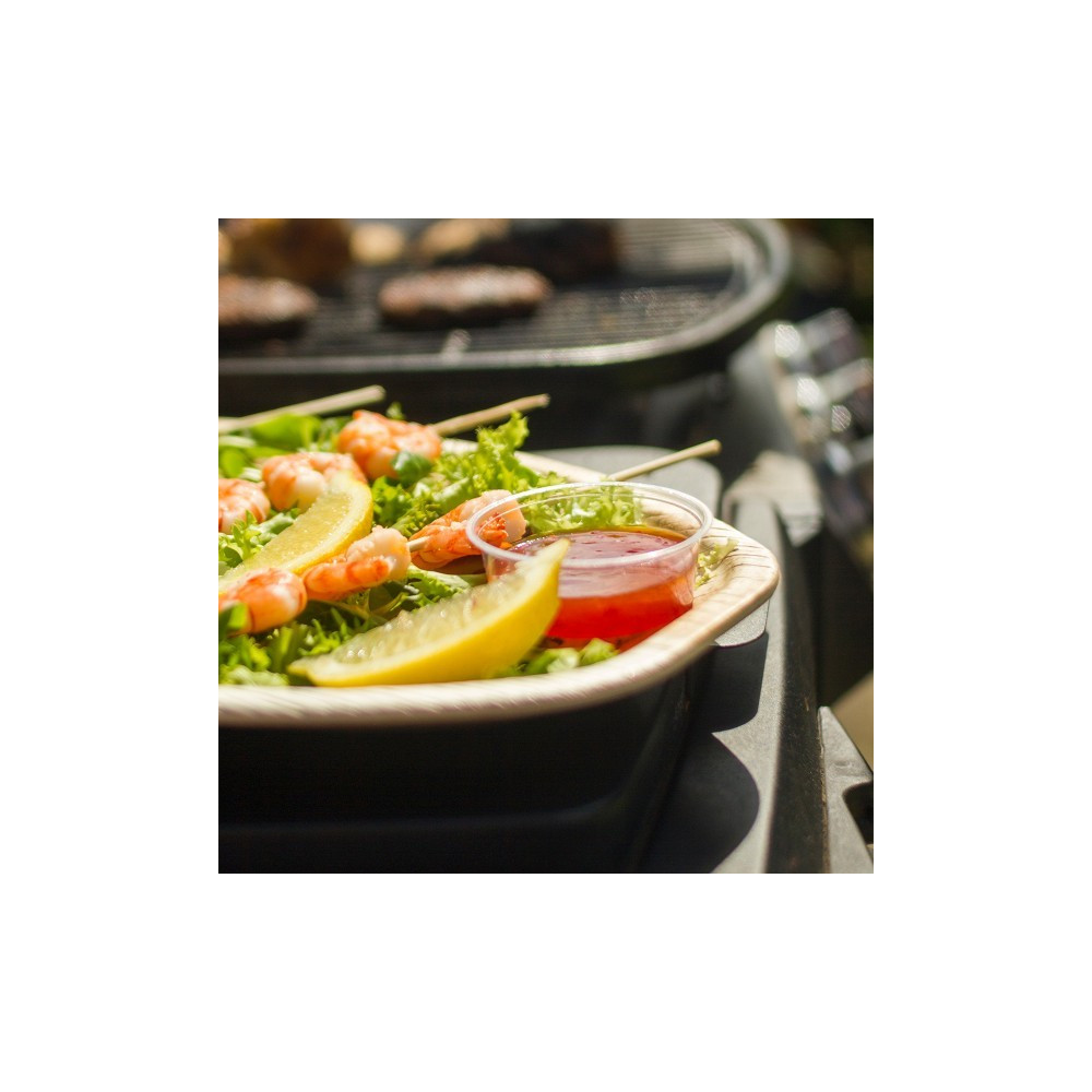 Priehľadná miska, vyrobená z bioplastu bez obsahu ropy, biologicky odbúrateľná. Vhodná do 40°C.