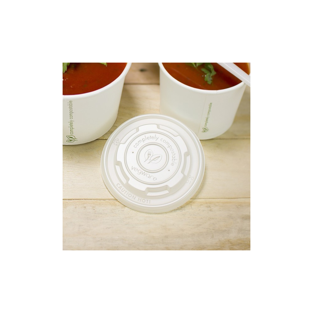 PLA viečko na poháre vhodné na papierovú misku na polievku 150 ml, 200ml, 220ml a 295ml. Viečko dobre tesní, plne kompostovateľné.