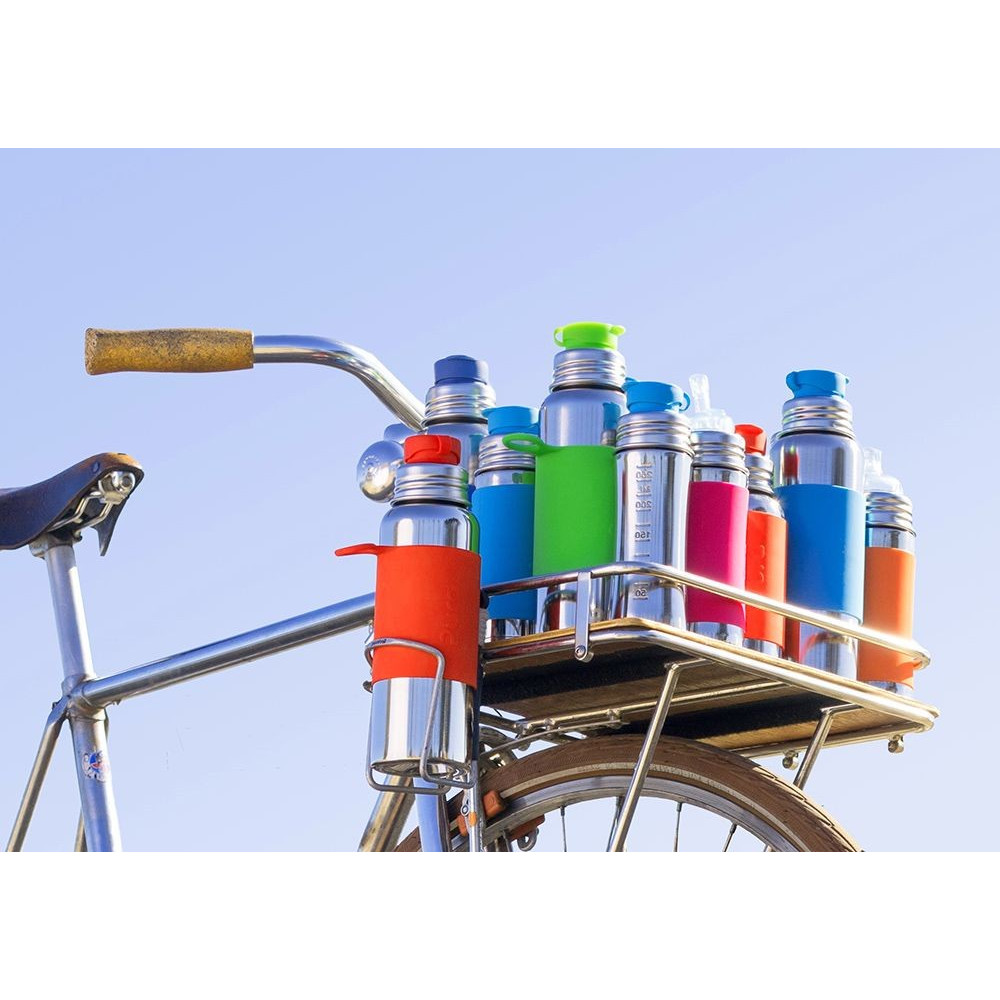 - Súčasťou je silikónový vrchnák chrániaci cumlík a vymeniteľný farebný silikónový návlek na fľašu pre lepšie uchopenie a izoláciu
