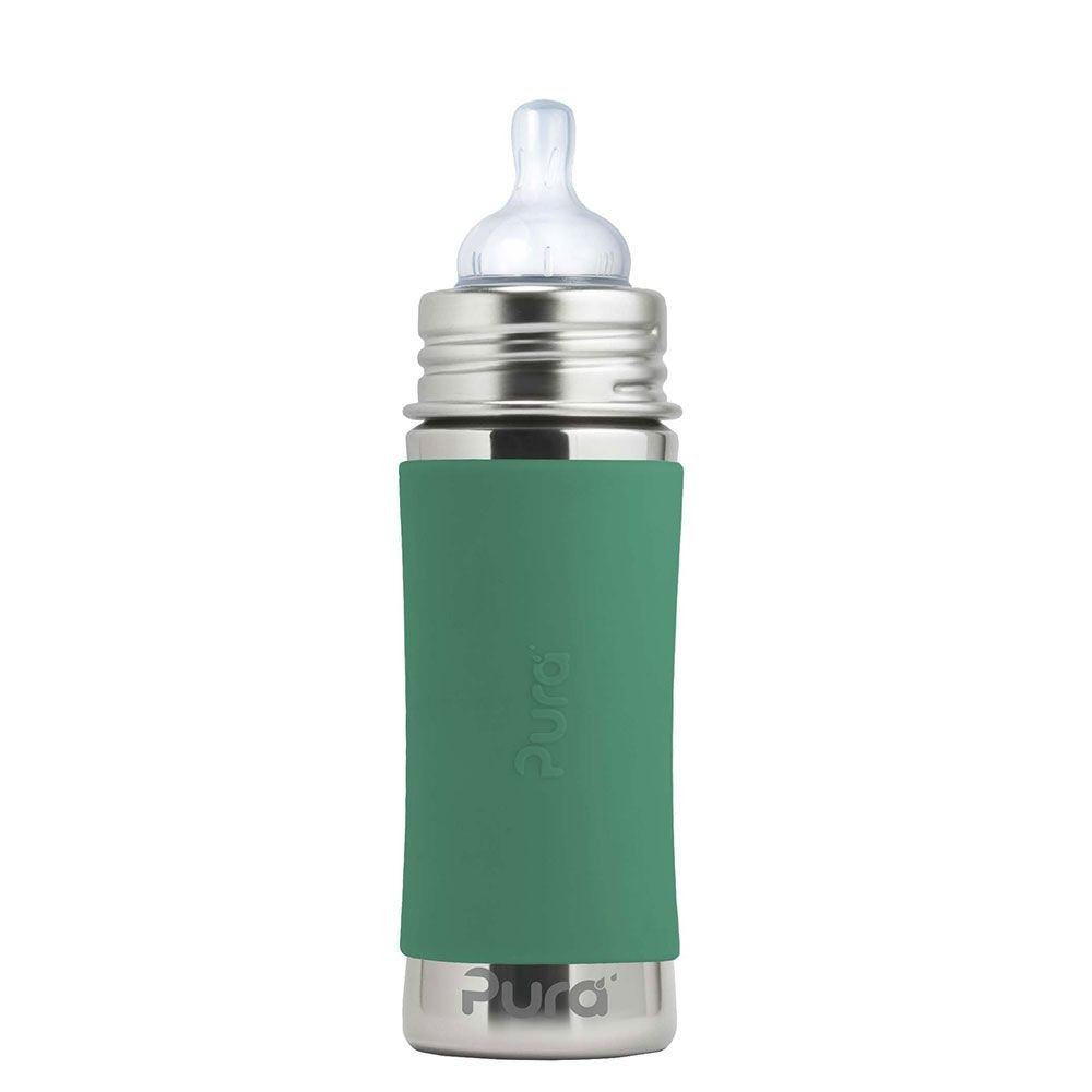 Pura® nerezová dojčenská fľaša 325ml Mint je bezpečná fľaša vyrobená 100% bez plastových častí. Konečne bezpečná fľaša vyrobená 100% bez plastových častí. S Pura fľašami si môžete byť istí, že sa do nápoja vnútri neuvoľňujú žiadne škodlivé látky a toxíny, ani príchute a pachy ako je tomu u plastových fliaš alebo fliaš s plastovými vrchnákmi. Na ničom nezáleží viac ako na zdraví Vašich detí a Vás.