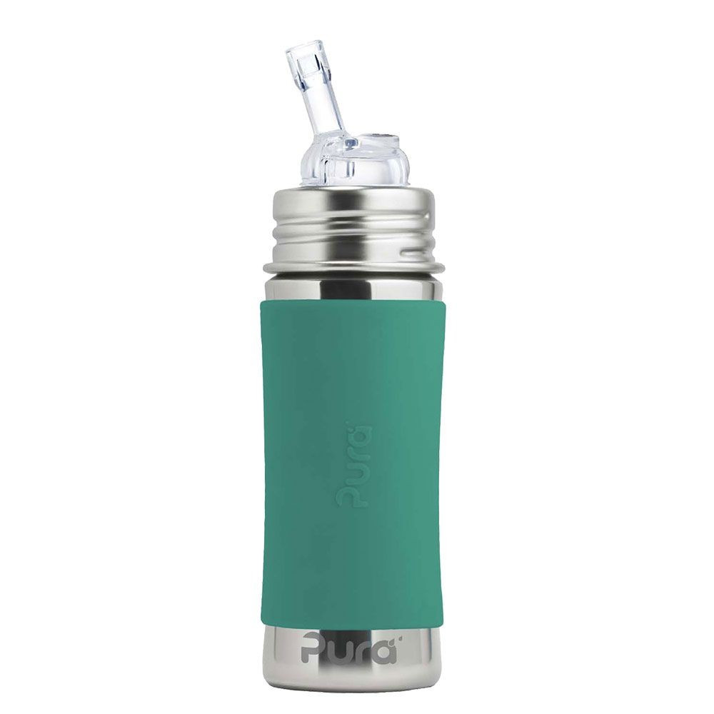 Pura® nerezová fľaša so slamkou 325ml Mint je bezpečná fľaša vyrobená 100% bez plastových častí. Konečne bezpečná fľaša vyrobená 100% bez plastových častí. S Pura fľašami si môžete byť istí, že sa do nápoja vnútri neuvoľňujú žiadne škodlivé látky a toxíny, ani príchute a pachy ako je tomu u plastových fliaš alebo fliaš s plastovými vrchnákmi. Na ničom nezáleží viac ako na zdraví Vašich detí a Vás.